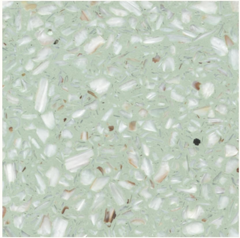 • Terrazzo nacré écologique et responsable aux douces nuances vert d’eau