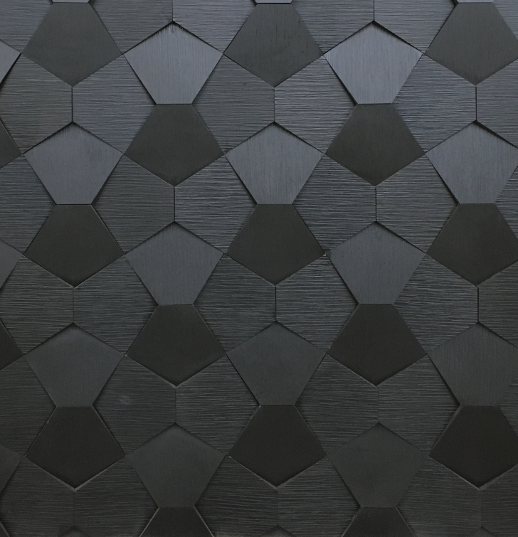 La mosaïque de bois FACET se présente sous forme de panneau mural au relief décoratif .