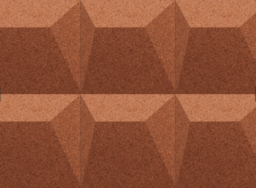 La revêtement mural GIZEH 3D BAUXITE en liège se présente sous forme de carreau individuel au relief sculpté .