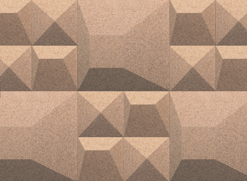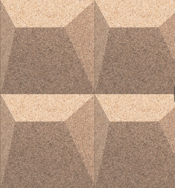 La revêtement mural GIZEH 3D PECHE en liège se présente sous forme de carreau individuel au relief sculpté .