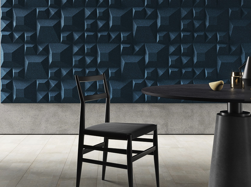La revêtement mural GIZEH 3D WATER en liège se présente sous forme de carreau individuel au relief sculpté .