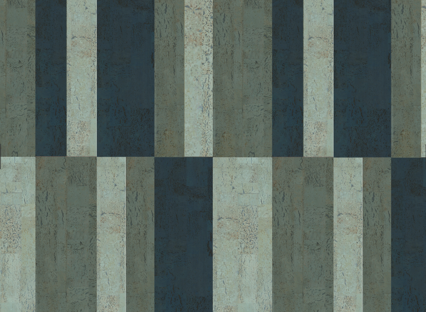 La revêtement mural ICON MOOD SAGE en liège se présente sous forme de mélange de carreau individuel imprimé au design graphic .