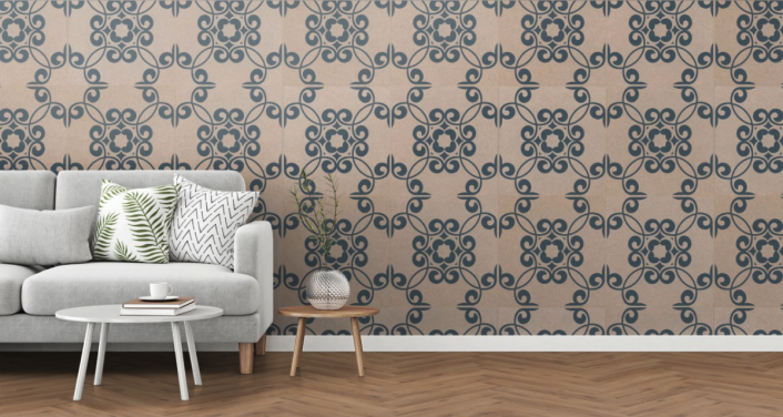 La revêtement mural ICON NOBLE ONE en liège se présente sous forme de carreau individuel imprimé au design graphic .