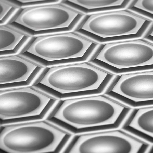 Le MDF sculpté Pentagon se présente sous forme de panneau mural au relief décoratif .