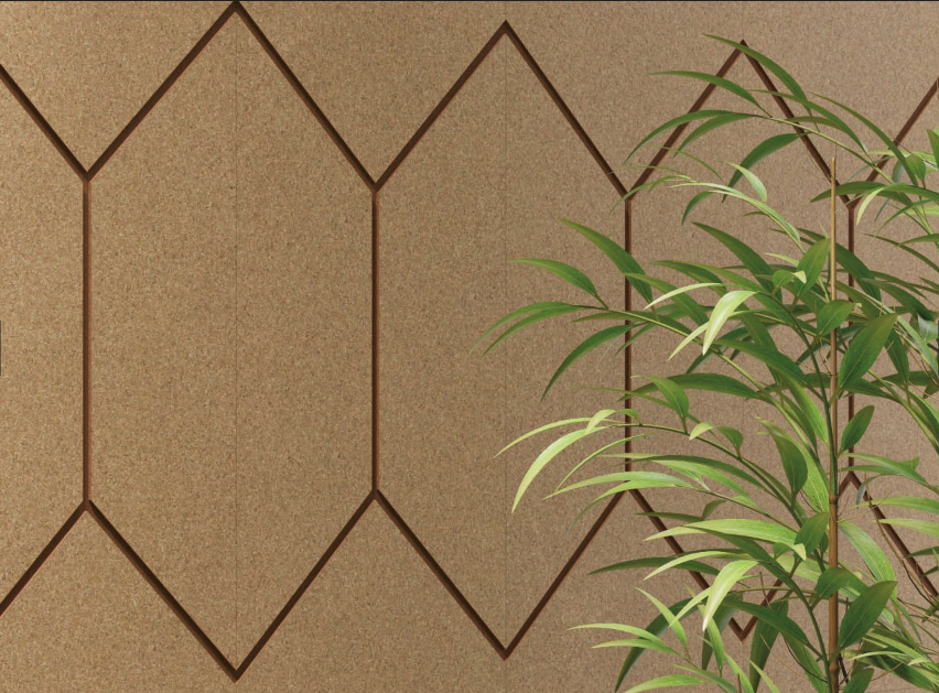La revêtement mural VECTOR ORANGE en liège se présente sous forme de panneau mural au design épuré .