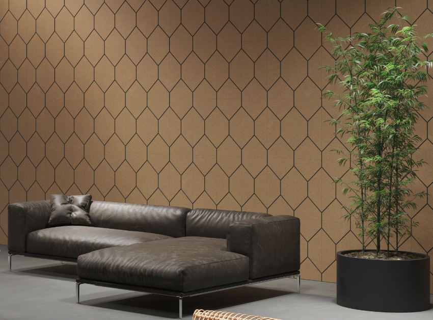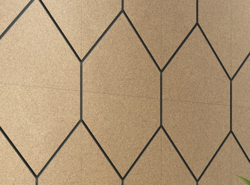 La revêtement mural VECTOR SEA en liège se présente sous forme de panneau mural au design épuré .